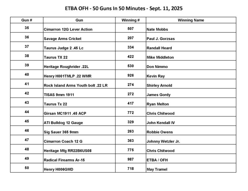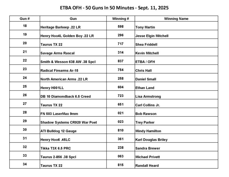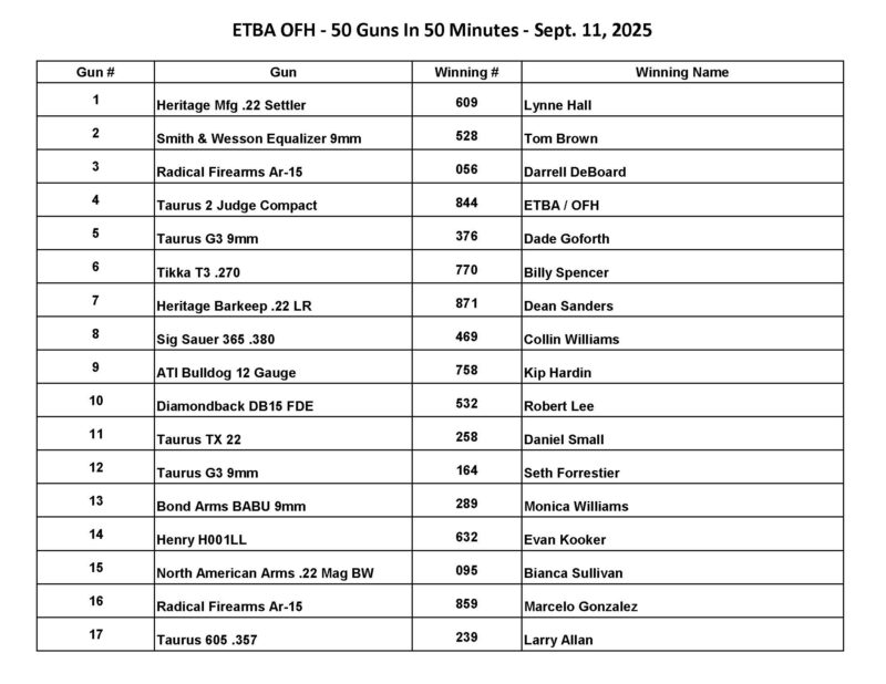 HomeMandi Kim And The Winners ARE….. Please claim your prize at the Armed Texans Gun Store and Range at 369 Co Rd 2784, Mineola, TX. CONGRATULATIONS to all of the winners and THANK YOU to everyone who purchased tickets and supported this worthy cause!
