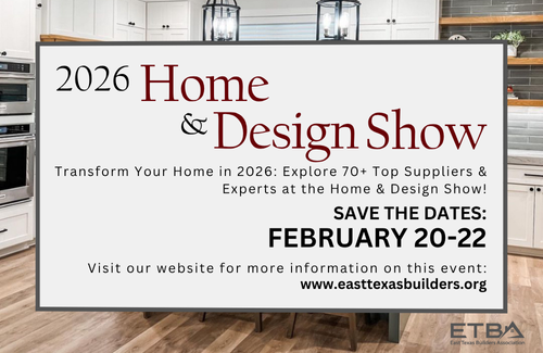 Each February, the East Texas Builders Association along with builders and associates of ETBA, showcase the services they offer. The public can visit with each vendor and get to know their products and services. Click on the links below to access more information and to find out how to get tickets.